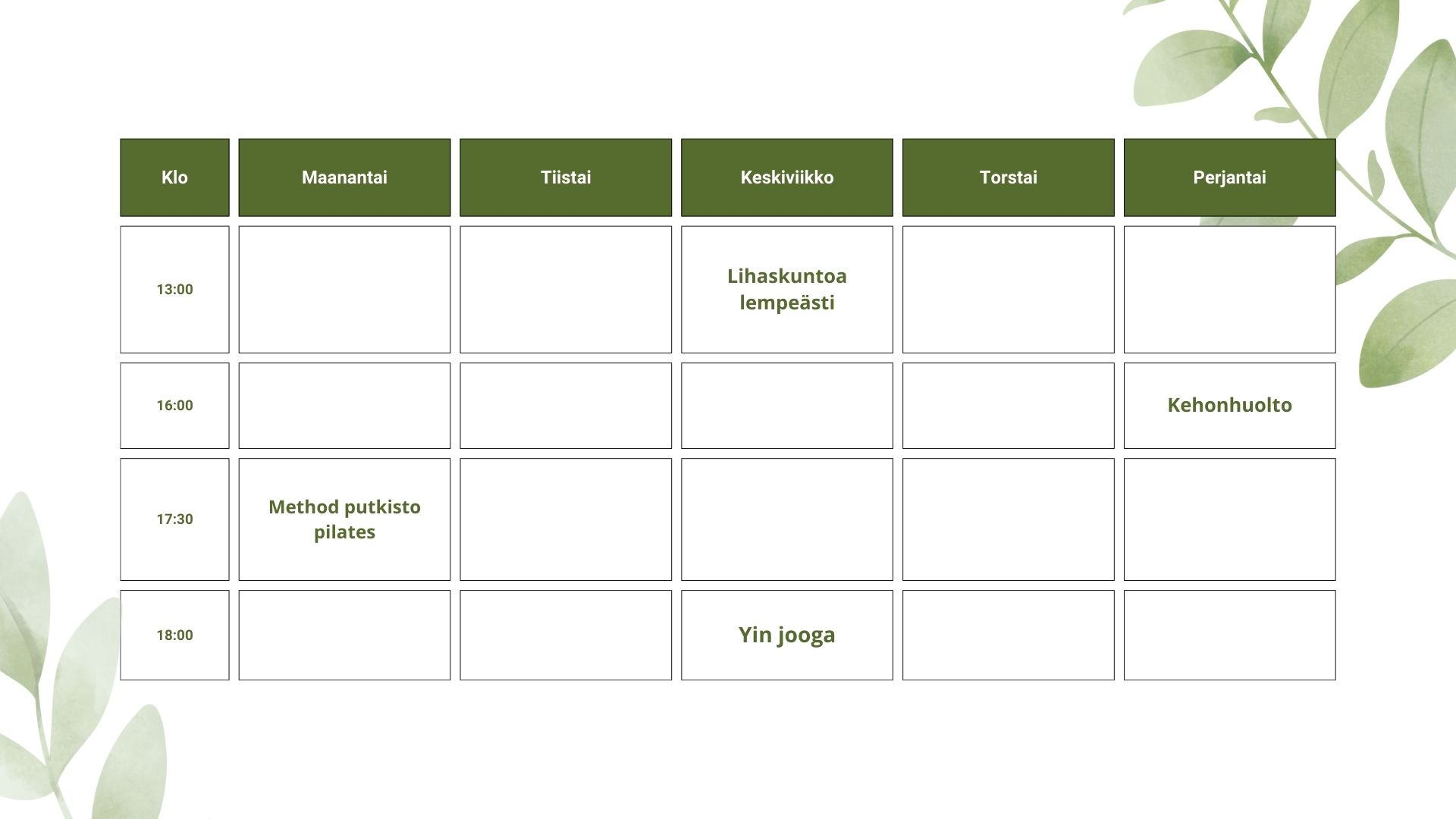 – Tunti peruuntuu, jos osallistujia on vähemmän. Ilmoitus lähetetään sähköpostitse 2 tuntia ennen tunnin alkua.